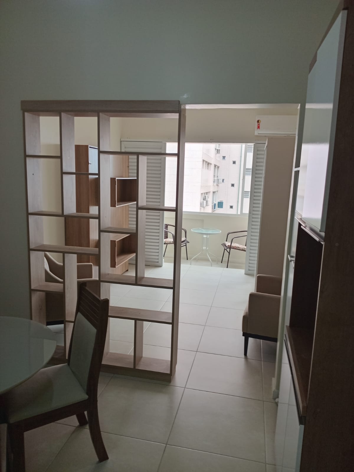 Apartamento possui, fogão, exaustor, cama de casal com colchão, guarda roupa com espelho, armários embutido, mesa com 4 (quatro) cadeiras, chuveiro, 2 (dois) ventiladores de teto, ar condicionado.