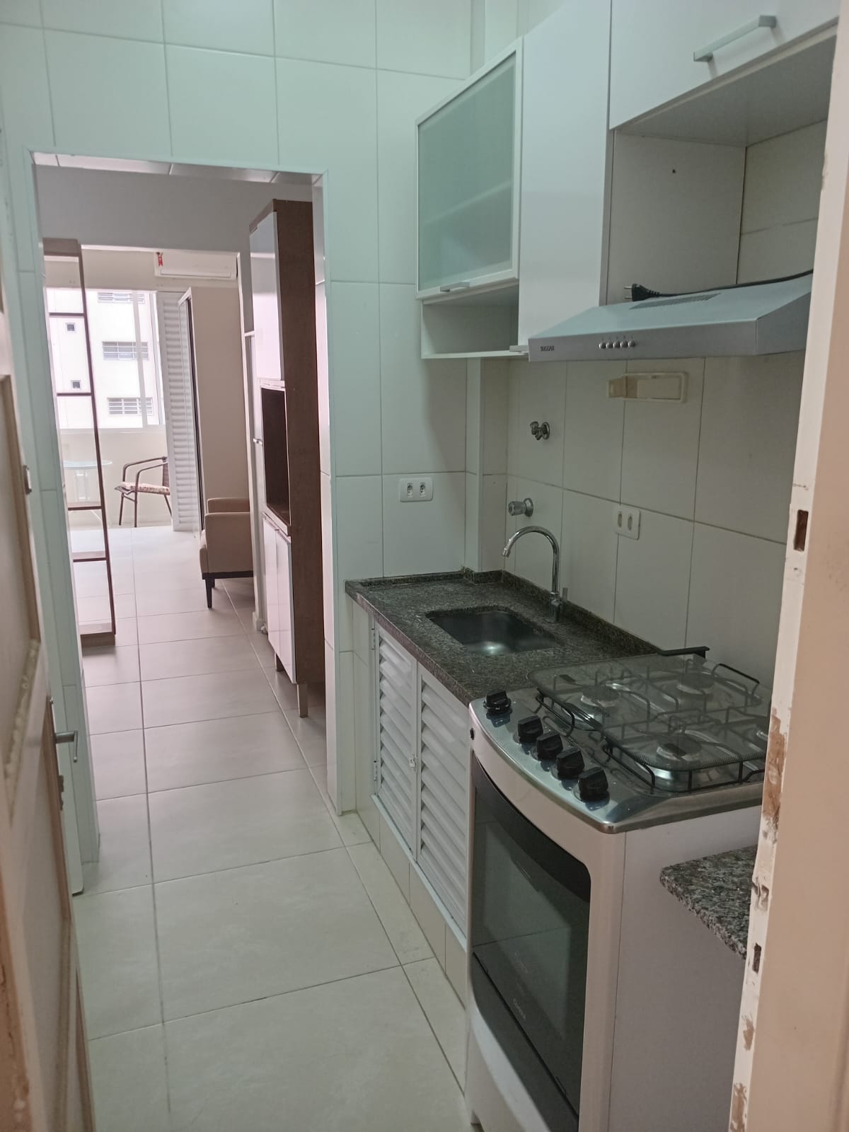 Apartamento reformado, semi mobiliado, com sacada com vista para o mar.